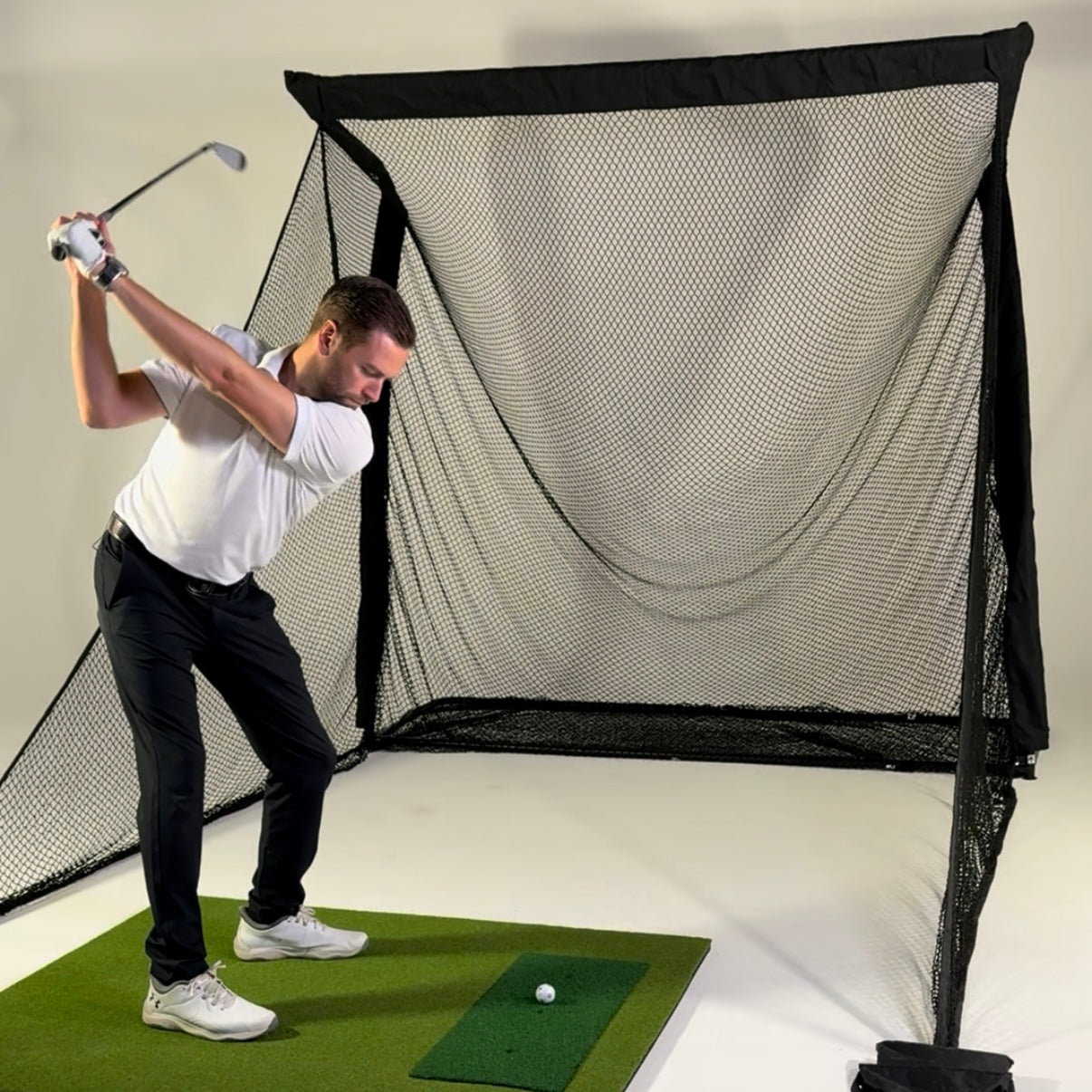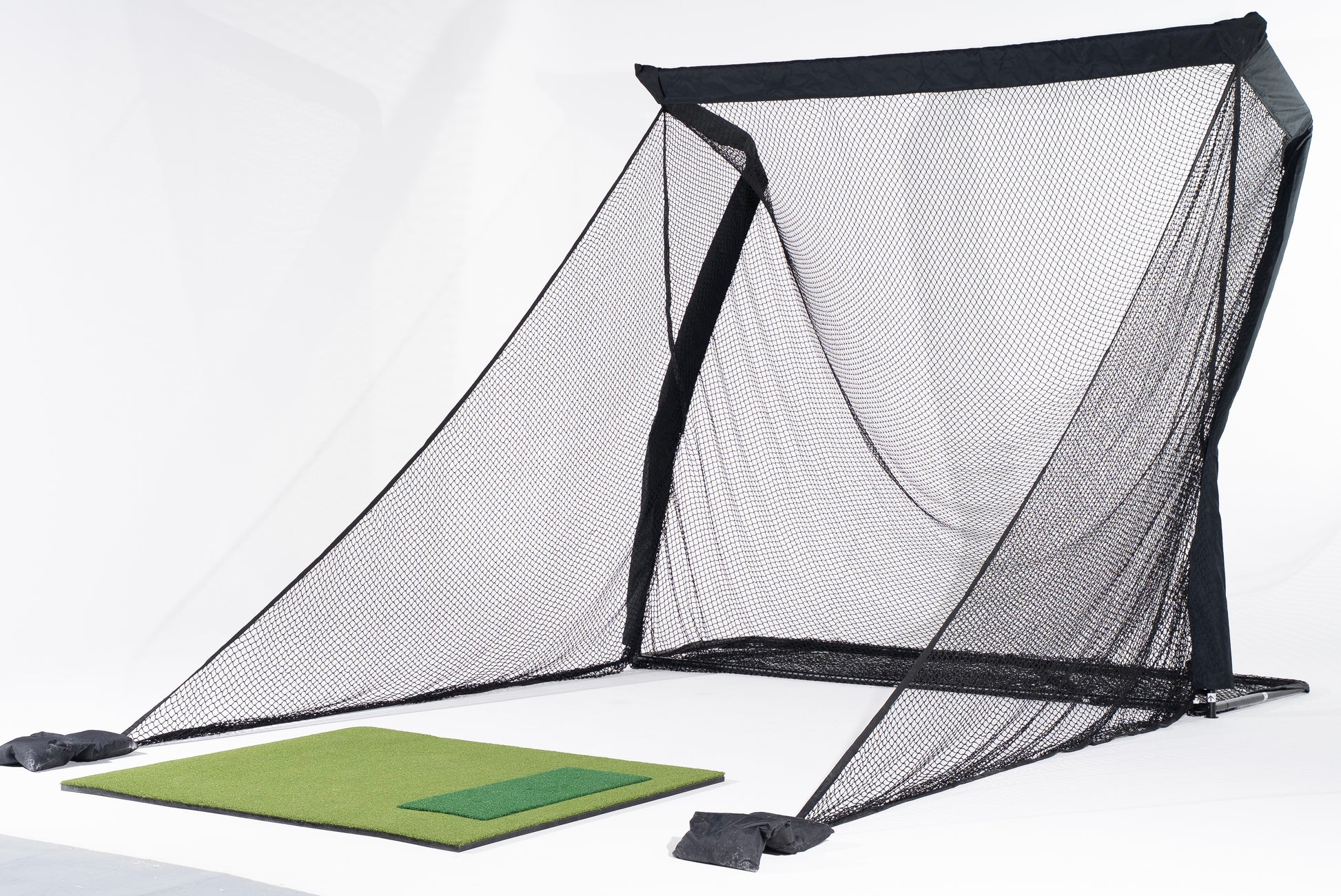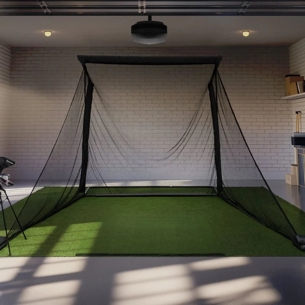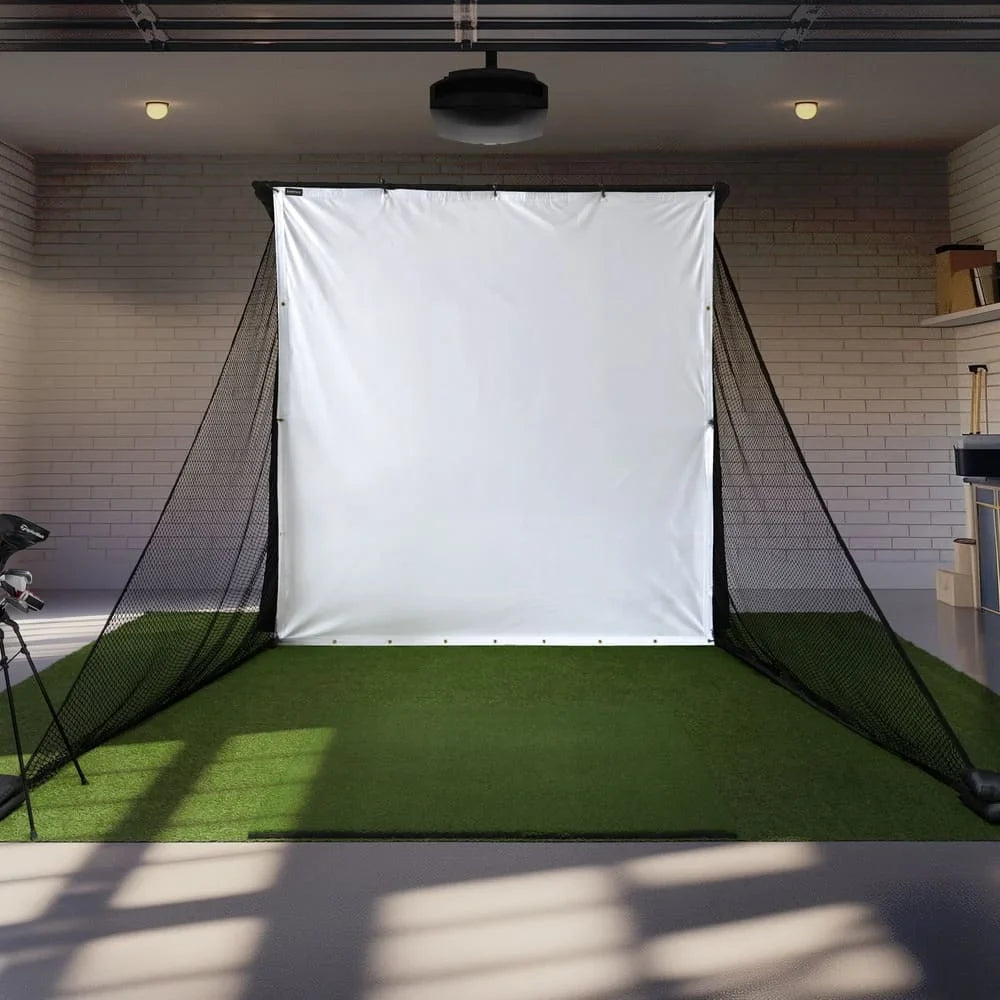 Offering a budget-friendly alternative to a full golf enclosure, this versatile setup is perfect for creating a pop-up or home simulator screen using the 20 bungee cords included.